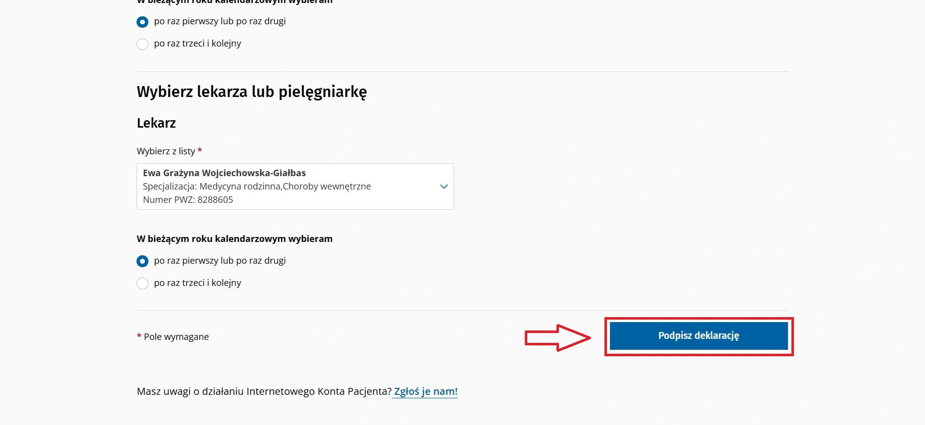 Na sam koniec wystarczy kliknąć na dole strony przycisk Podpisz deklarację aby zatwierdzić cały proces.